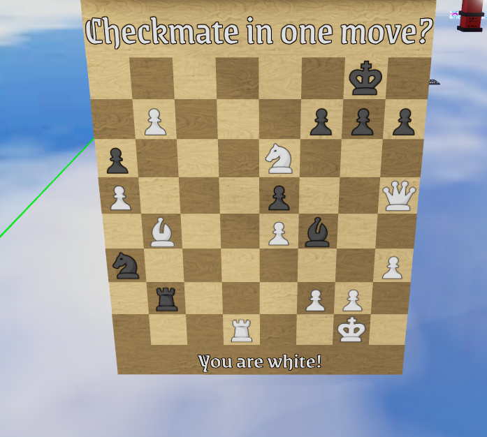 Puzzle shows a chessboard with a random game ongoing. Text at the top says "Checkmate in one move?", and at the bottom it says "You are white!".