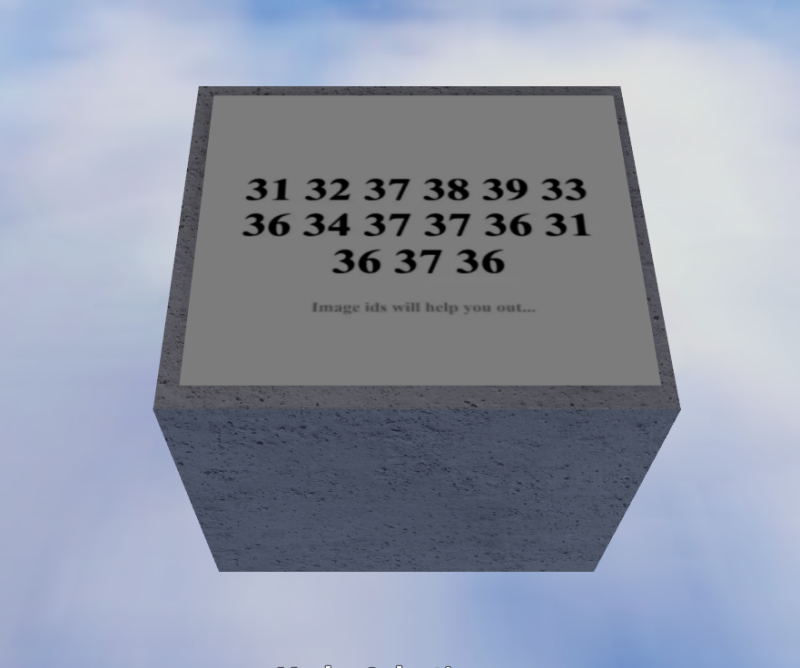 Puzzle shows a stone podium with numbers encrypted on it and a text saying "Image ids will help you out".