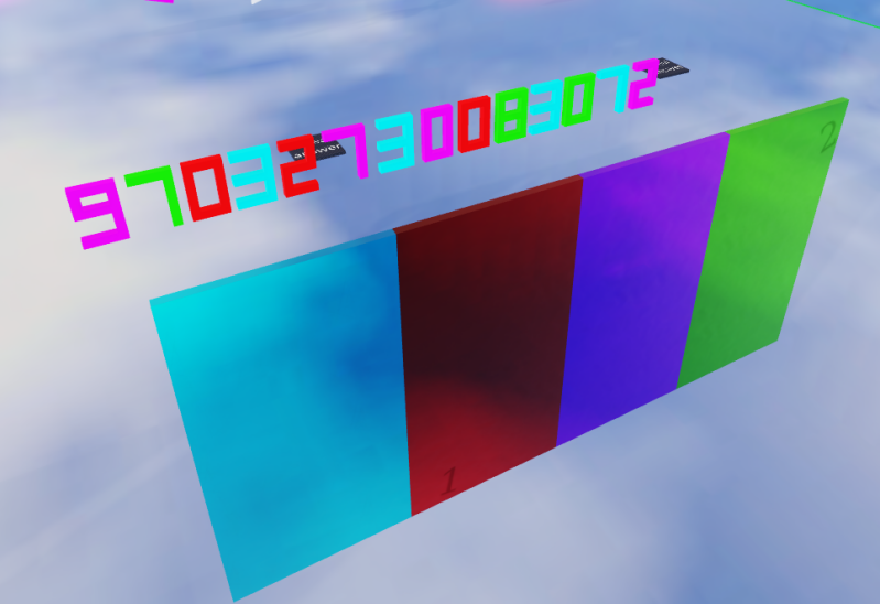 Puzzle shows 4 mirrors in a different colour set, a big string of numbers saying "97032730083072". There is also hidden numbers in the red and green mirrors which indicate something?